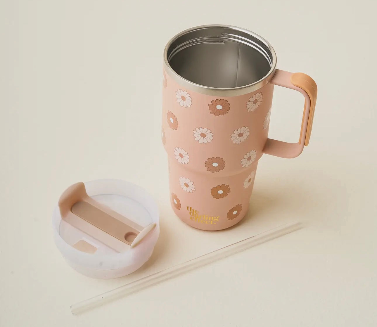 Perfect for hot or cold drinks Triple-wall insulated Straw included or sip through lid Fits in your cup holder Comfort grip handle with silicone