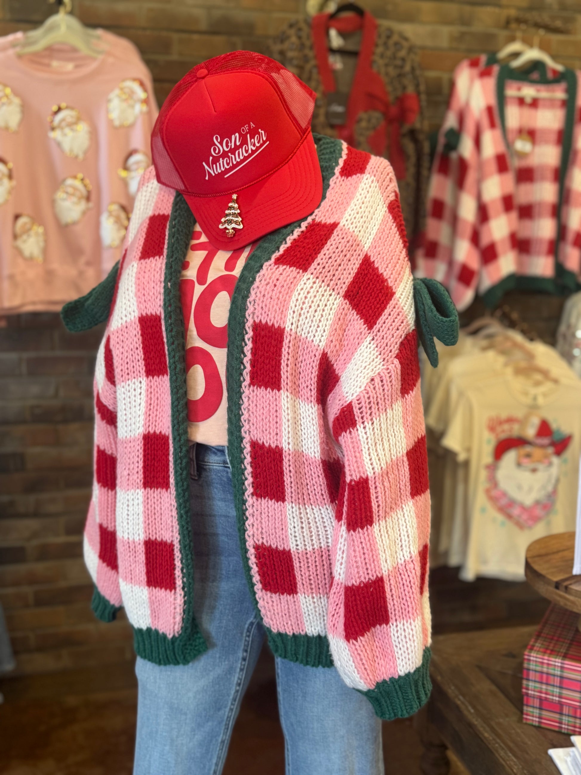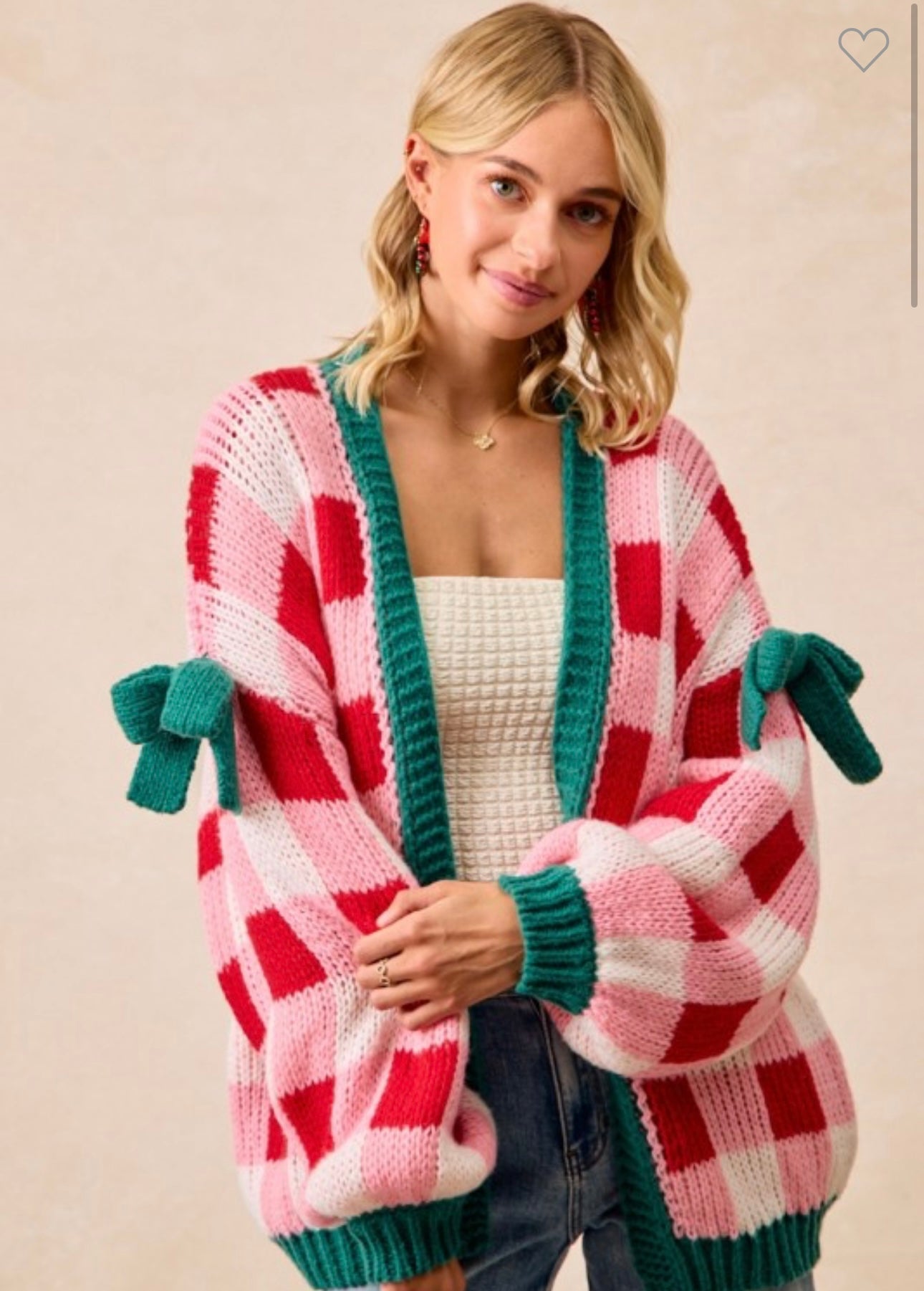 Oversized plaid Christmas cardi from Bibi with bow accents