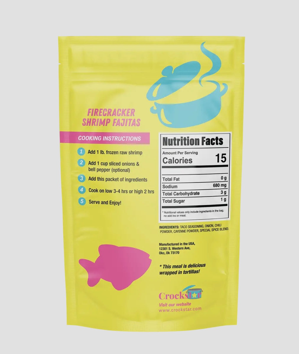 Crockstar's Firecracker Shrimp Fajitas brings delicious flavor to a quick and easy meal. Best served in a corn tortilla and great with cilantro rice! *NOT spicy*