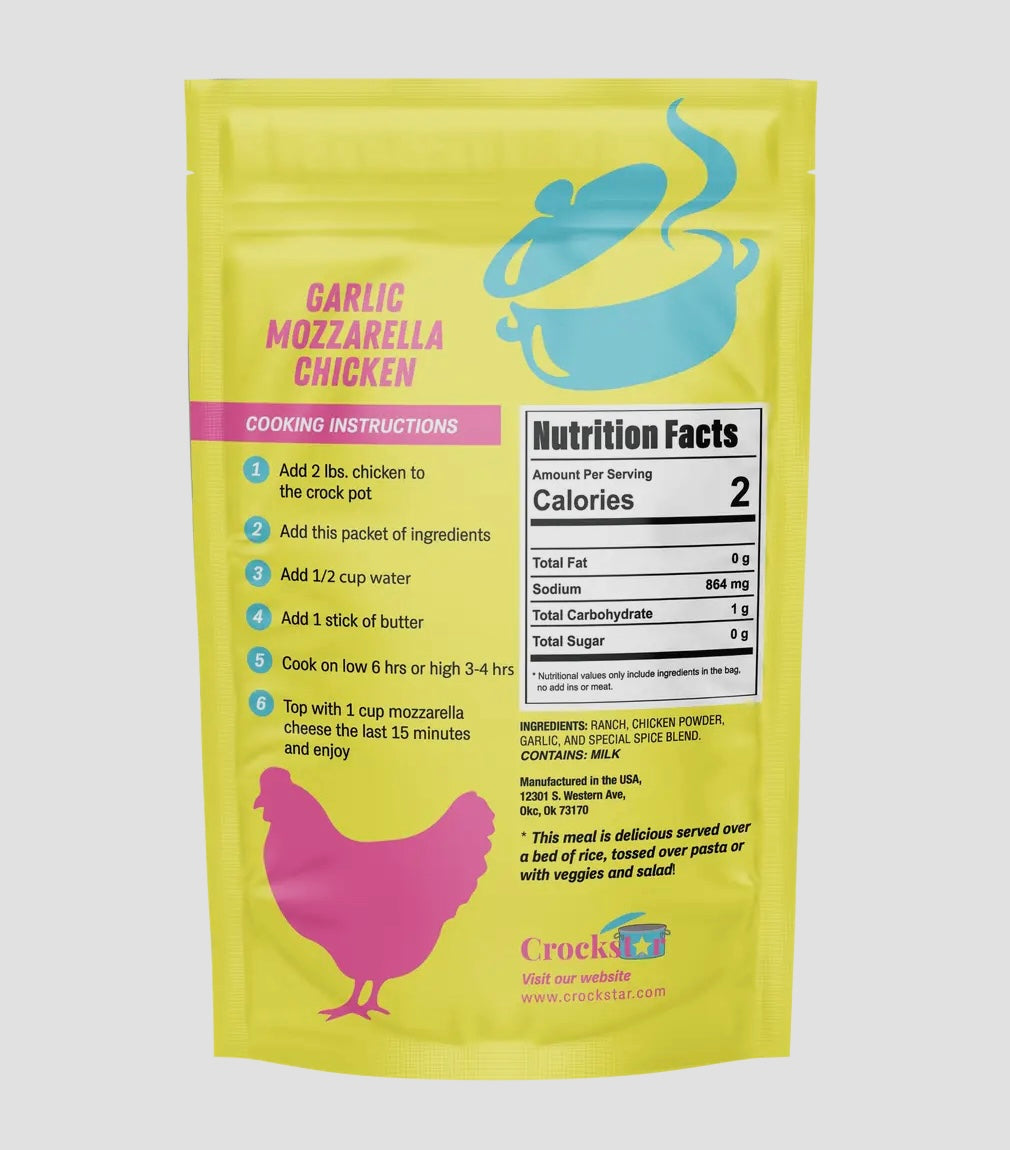 Crockstar's Garlic Mozzarella Chicken is a buttery, garlic-y, cheesy meal that is super tasty and flavorful. Our favorite way to eat this dish is served over a baked potato, rice, your favorite pasta or vegetable.