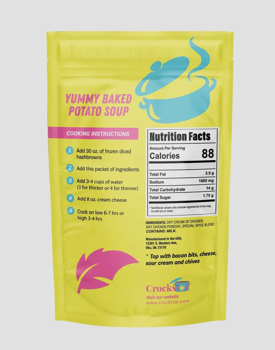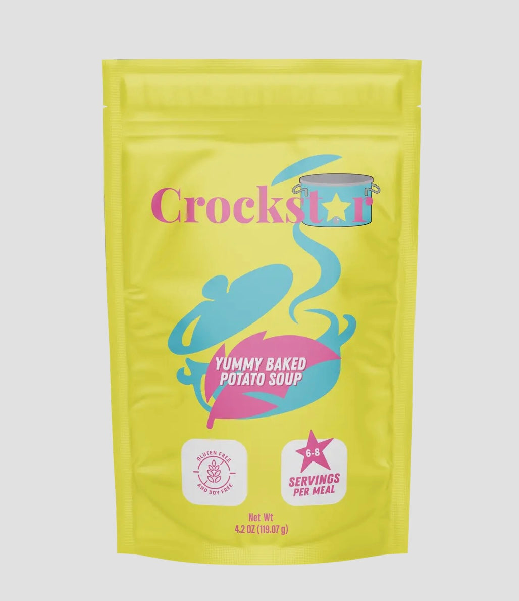 Crockstar's Yummy Baked Potato Soup is the Best & Easiest Baked Potato Soup you'll ever make! Simply add your Crockstar packet, 3-4 cups of water, 1 block of cream cheese and a package of frozen diced hash browns. When you get back home dinner will be ready!