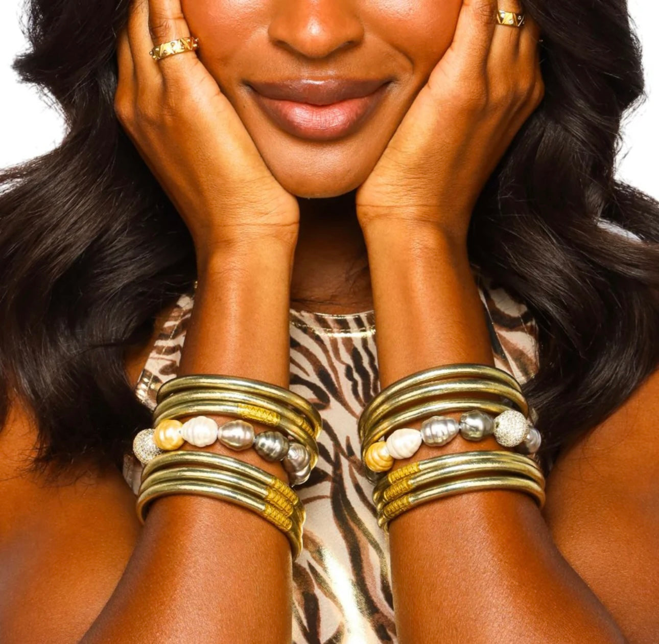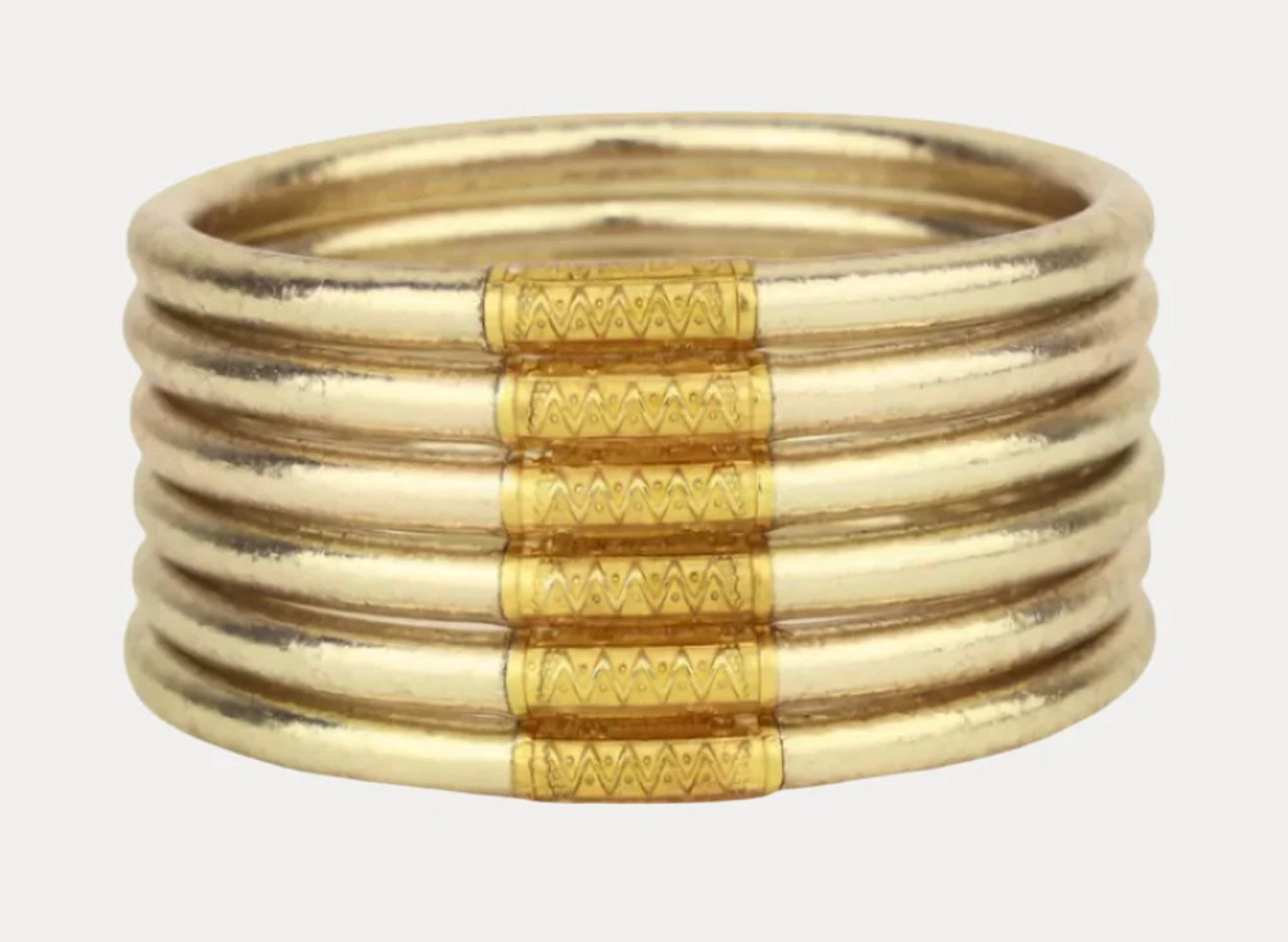 BuDhaGirl Etoile, the soft gold All Weather Bangles® that capture starlight.