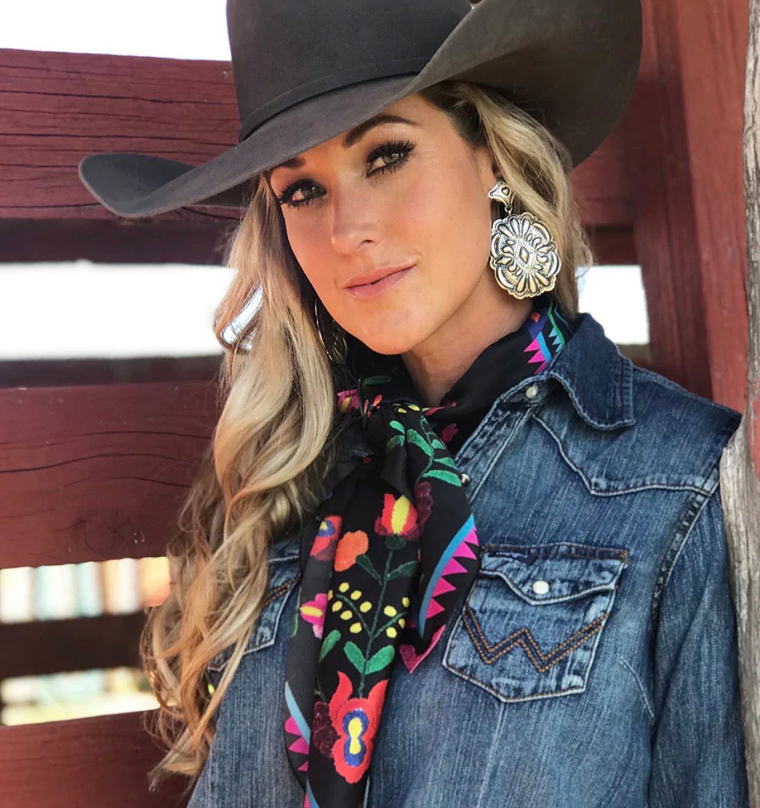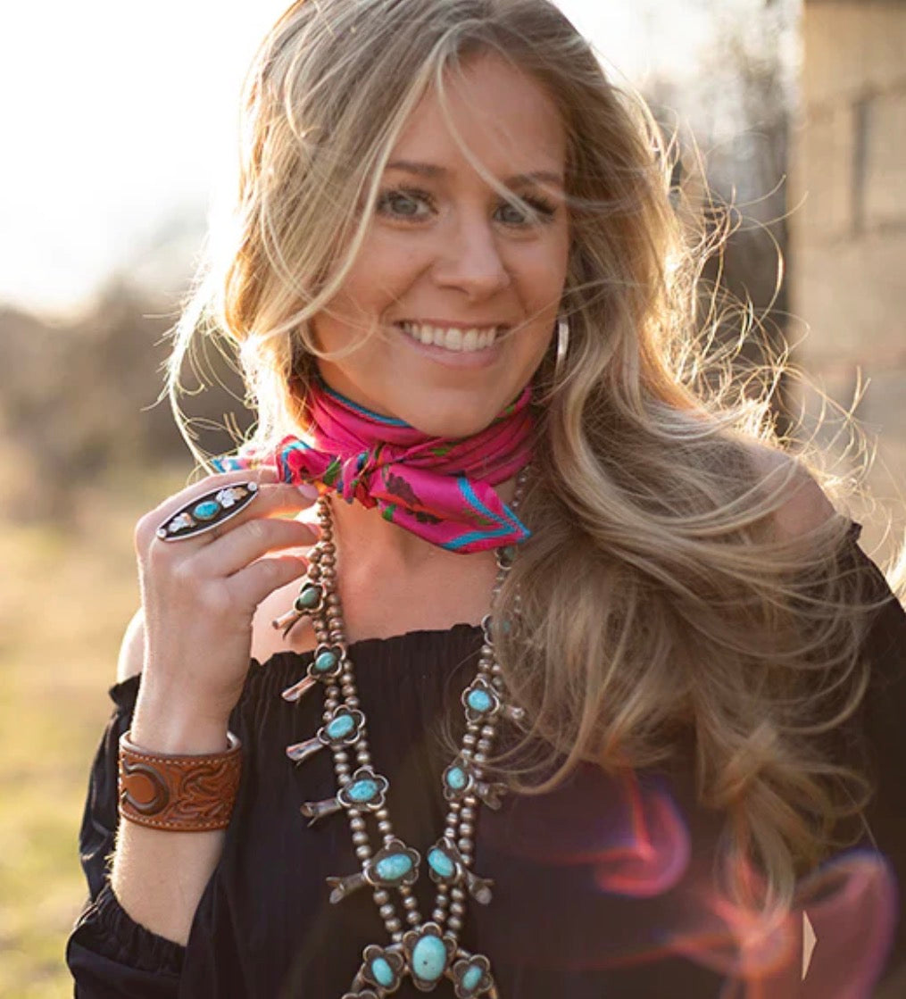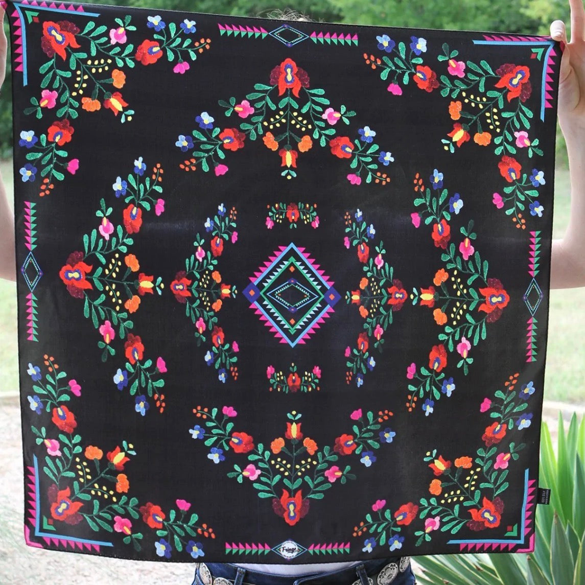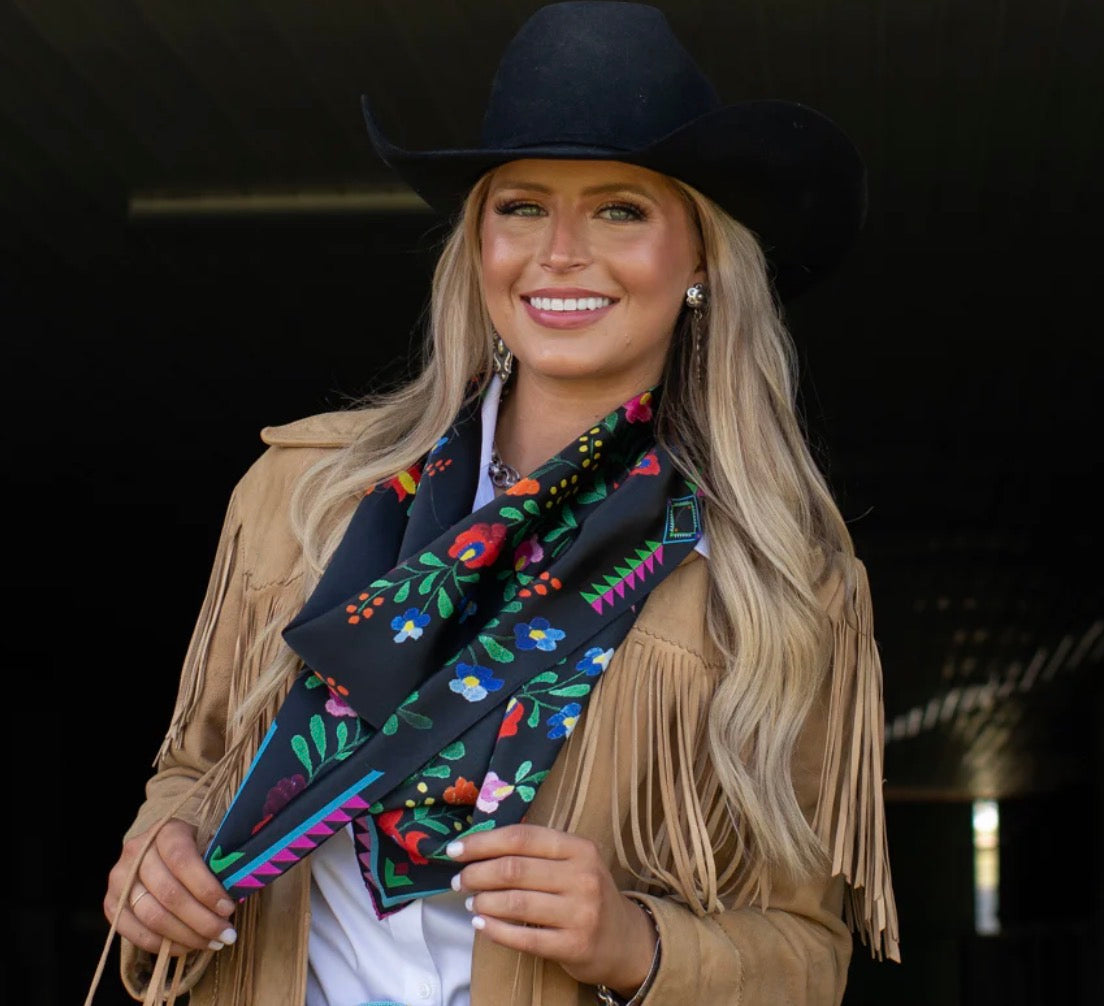We love this 100% Satin Silk bright, colorful scarf because of it's versatility. Classified as a Shorty in the Fringe line because of it's usable 26x26 size. It's so easy to "tie one on" and make a ho-hum outfit look... well, just better.