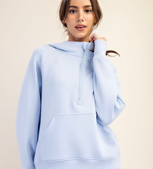 Slightly cropped Hoodie - Quarter zipper closure - Kangaroo pocket