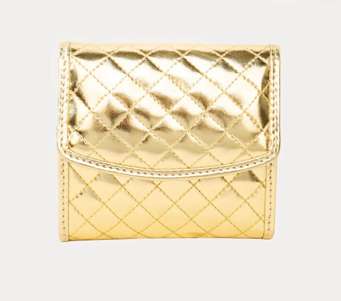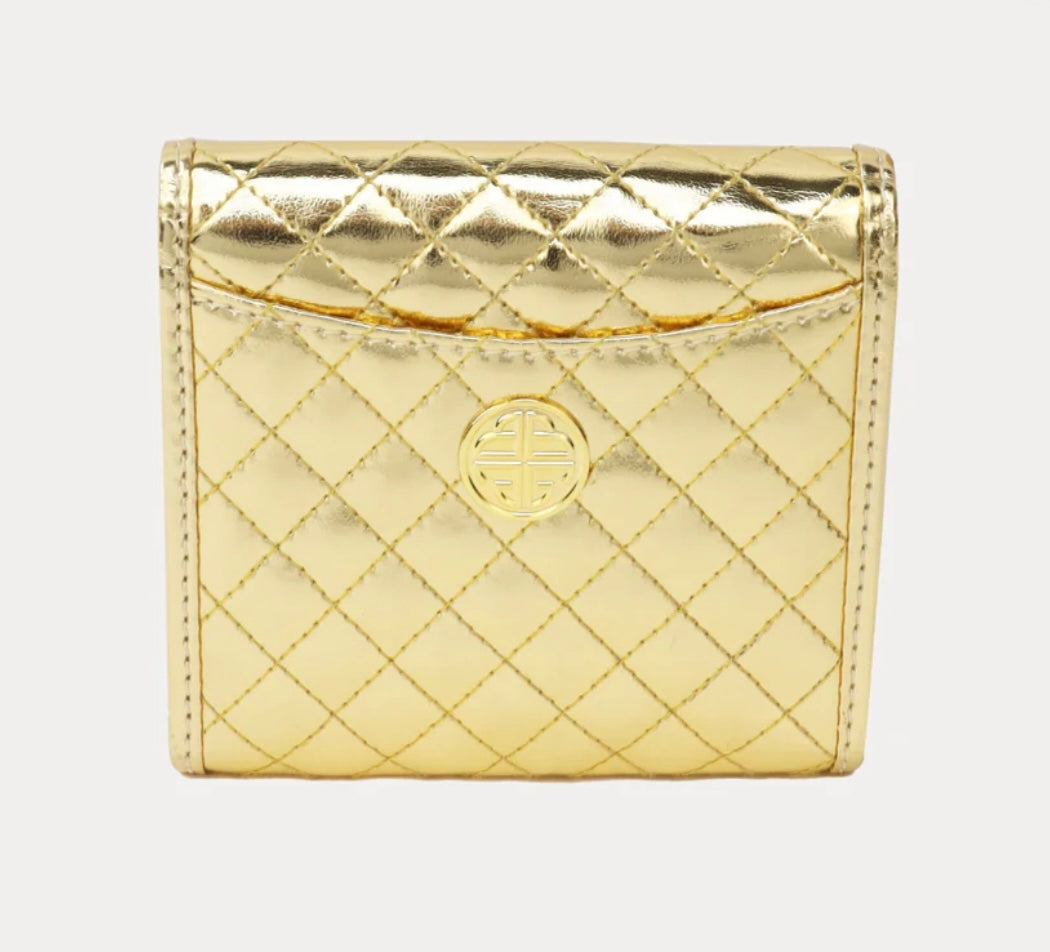 A luminous quilted gold wallet, thoughtfully designed with style, function, and timeless BuDhaGirl elegance.