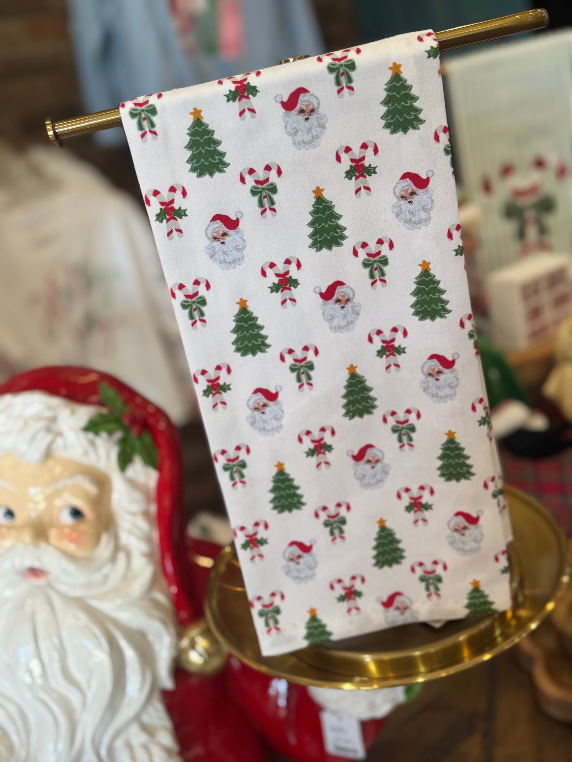 Add festive cheer to your kitchen with our Peppermint Pine Tea Towel. Featuring a playful print of classic holiday icons, this towel brings seasonal charm and brightens up your space with cheerful style, perfect for holiday baking, gifting, or everyday festive fun.