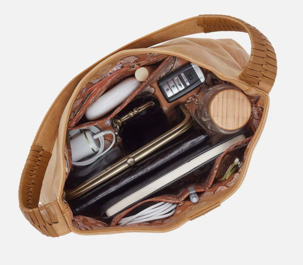 Romy HOBO in timeless, worn-in buffed leather; simple stitching, plenty of pockets, and a hidden magnetic closure