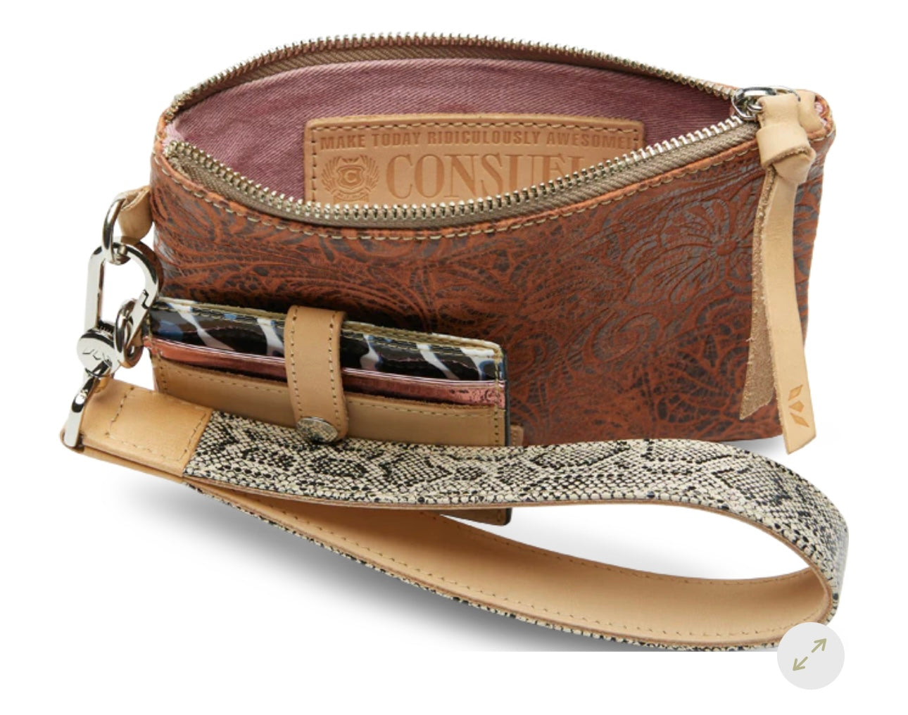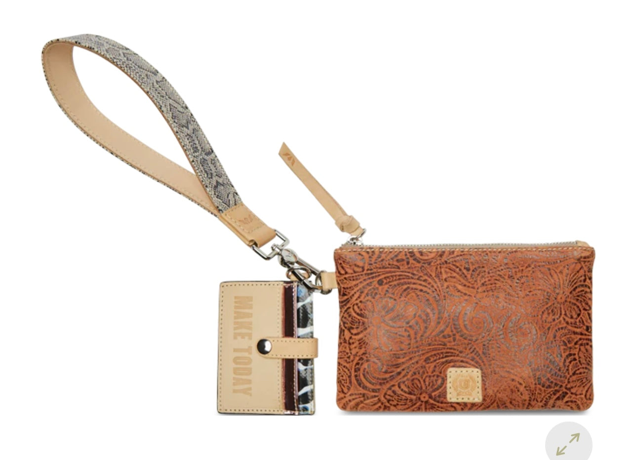 - Wynn textured snake print wristlet
