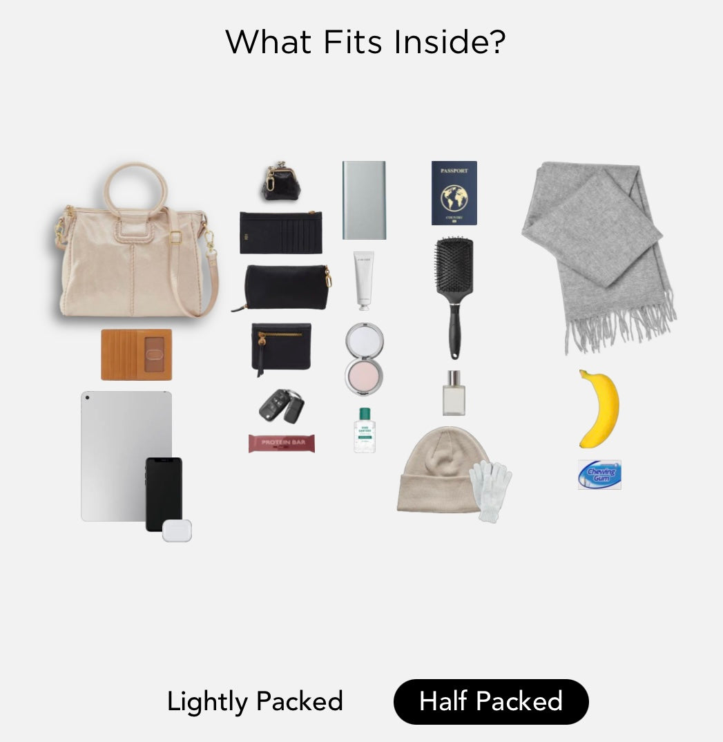 A medium satchel bag with top handle & adjustable/removable strap. So much interior space & pockets aplenty. Shimmer metallic leather & brushed gold hardware