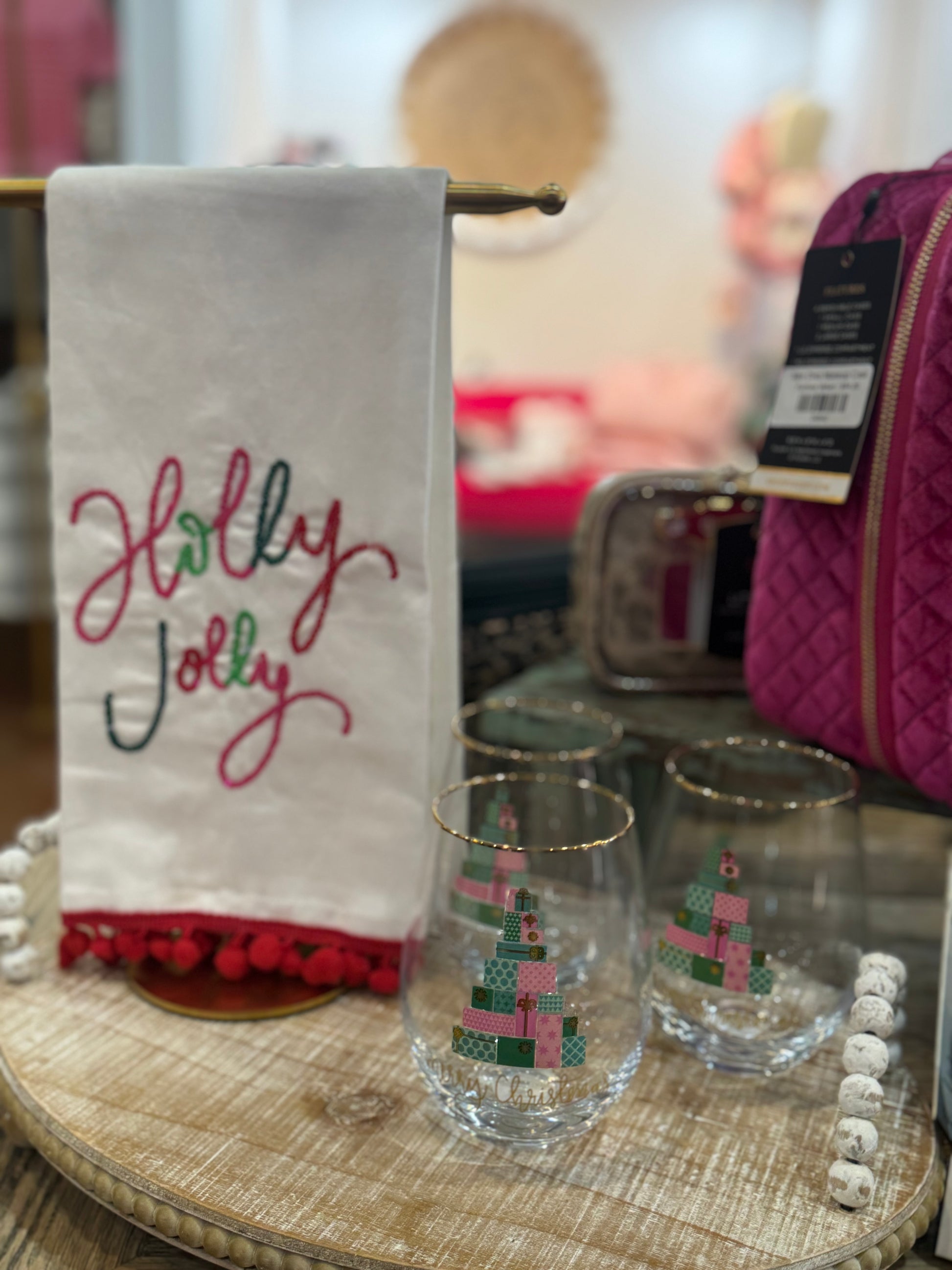 Celebrate the season with our Present Tree Stemless Wine Glass, a festive blend of holiday cheer and elegance. Featuring playful designs of stacked presents shaped like a Christmas tree and festive all-over candy canes, these glasses are accented with shimmering gold details that add a touch of luxury. The gold foil rim completes the sophisticated look, making it perfect for holiday gatherings or cozy nights by the fire.