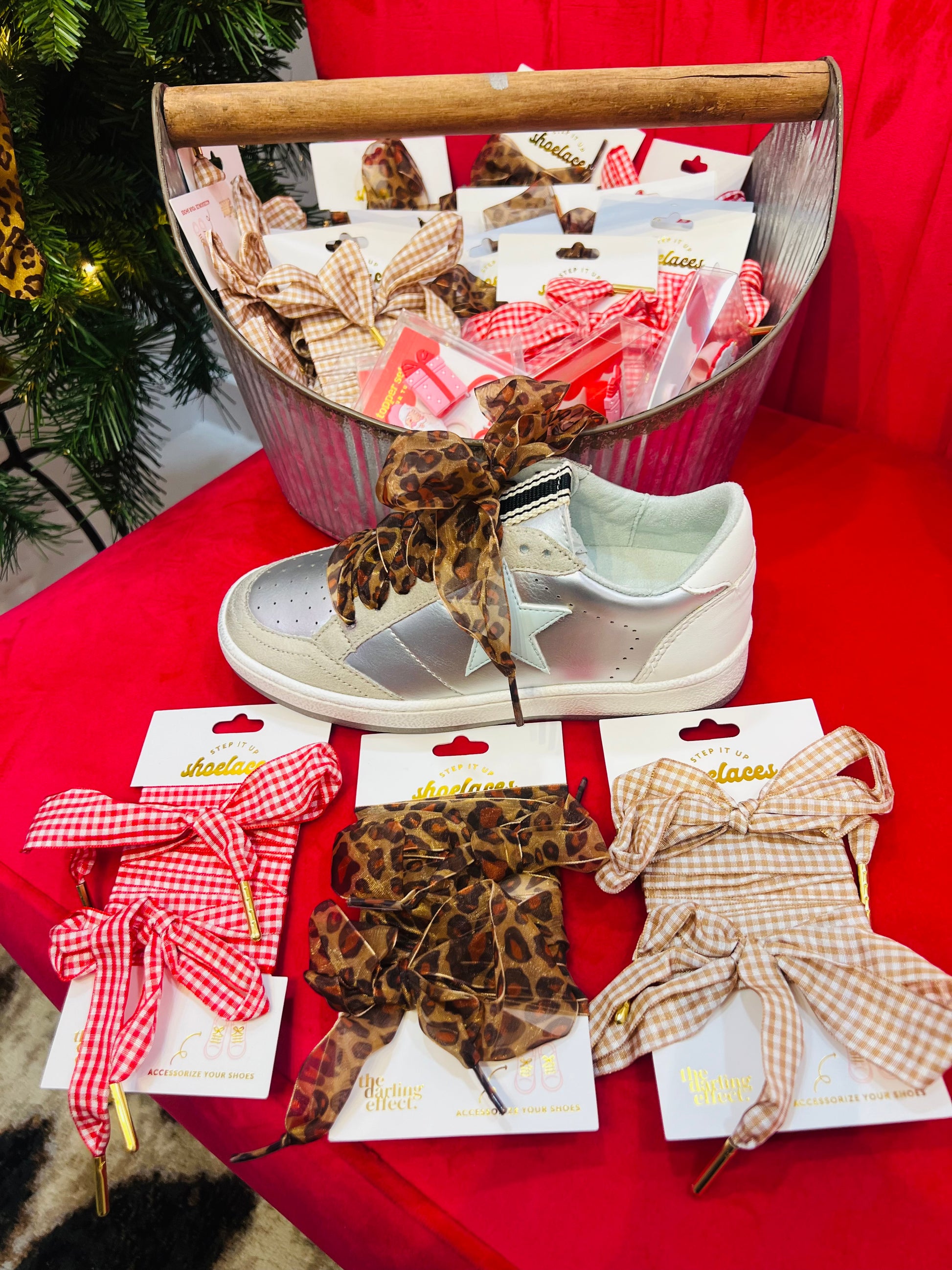 Give your shoes a playful upgrade with our Step It Up Shoelaces—available in gingham, and sheer cheetah styles. Soft yet durable, these laces are designed for all-day comfort and easy tying, with just the right flexibility for perfect bows that stay put. Whether you're adding flair to sneakers or dressing up your favorite kicks, they’re designed to fit shoes with 6 rows of lace holes (12 total) for versatile use. Choose your vibe and tie it your way.