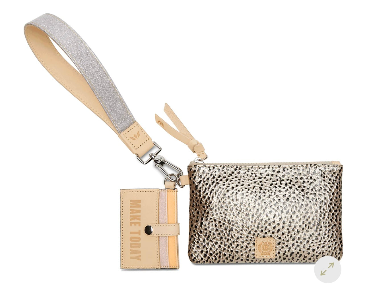 The Combi, a combination of on-the-go accessories, is a new way to carry your keys, cards, and the small stuff together or separately. This colorful wristlet wallet includes a pocket pouch, secure card slot wallet and fits comfortably around your wrist - ready for your next journey.